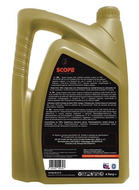 Масло моторное SCOPE Pegaso 10000 GEO SAE 5W40 SP 4л