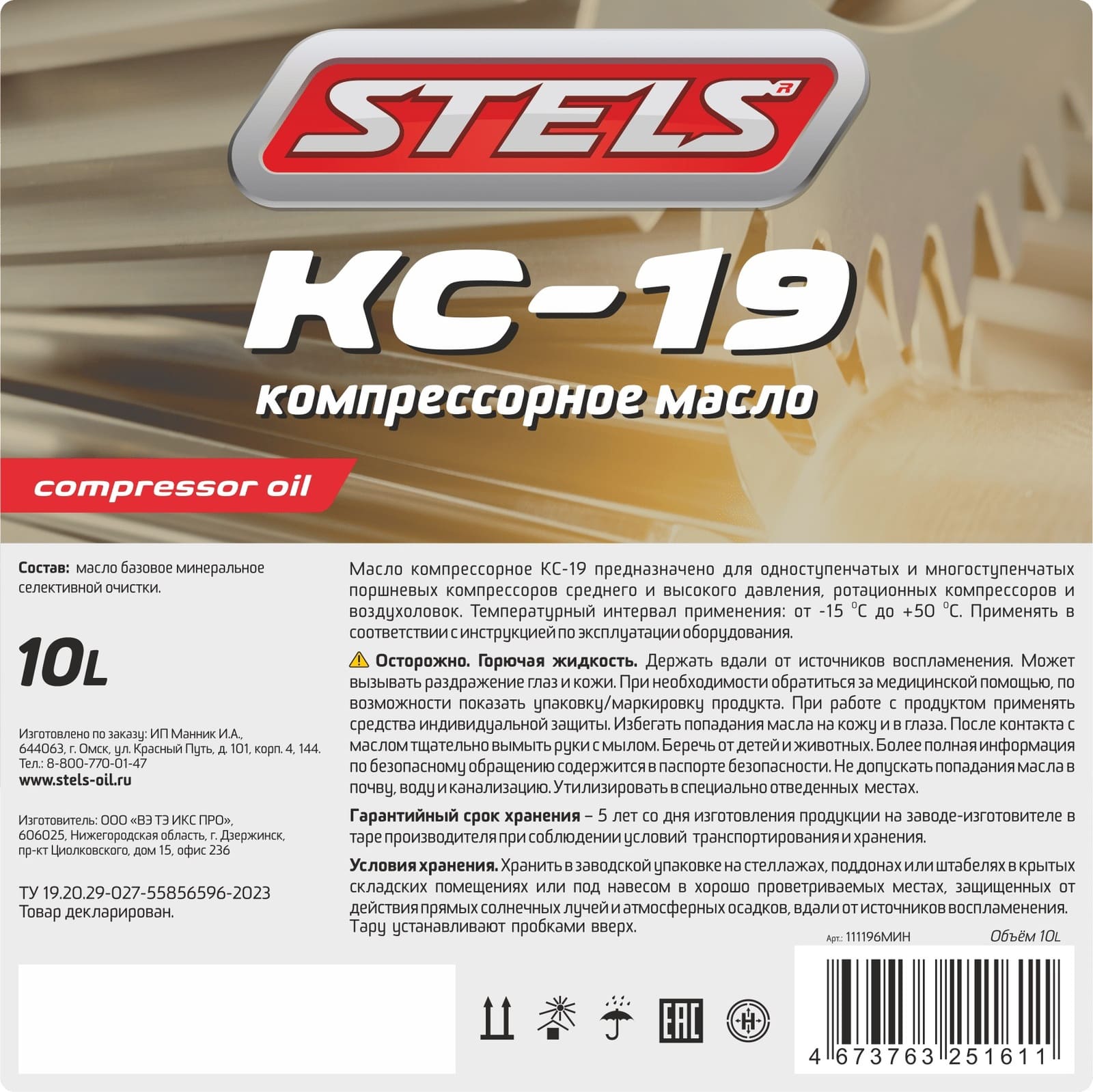 Масло компрессорное STELS КС 19 10л