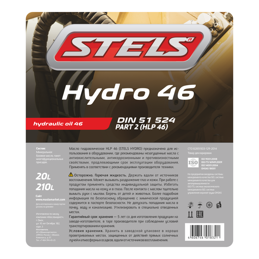 Гидравлическое масло HLP 46 для использования в гидросистемах импортного и отечественного промышленного оборудования, требующих применения высококачественных легированных масел.