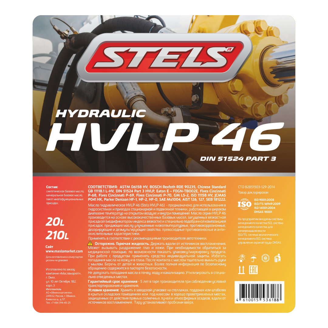 Высококачественное гидравлическое масло HVLP 46 для использования в гидросистемах и приводах стационарной и подвижной техники