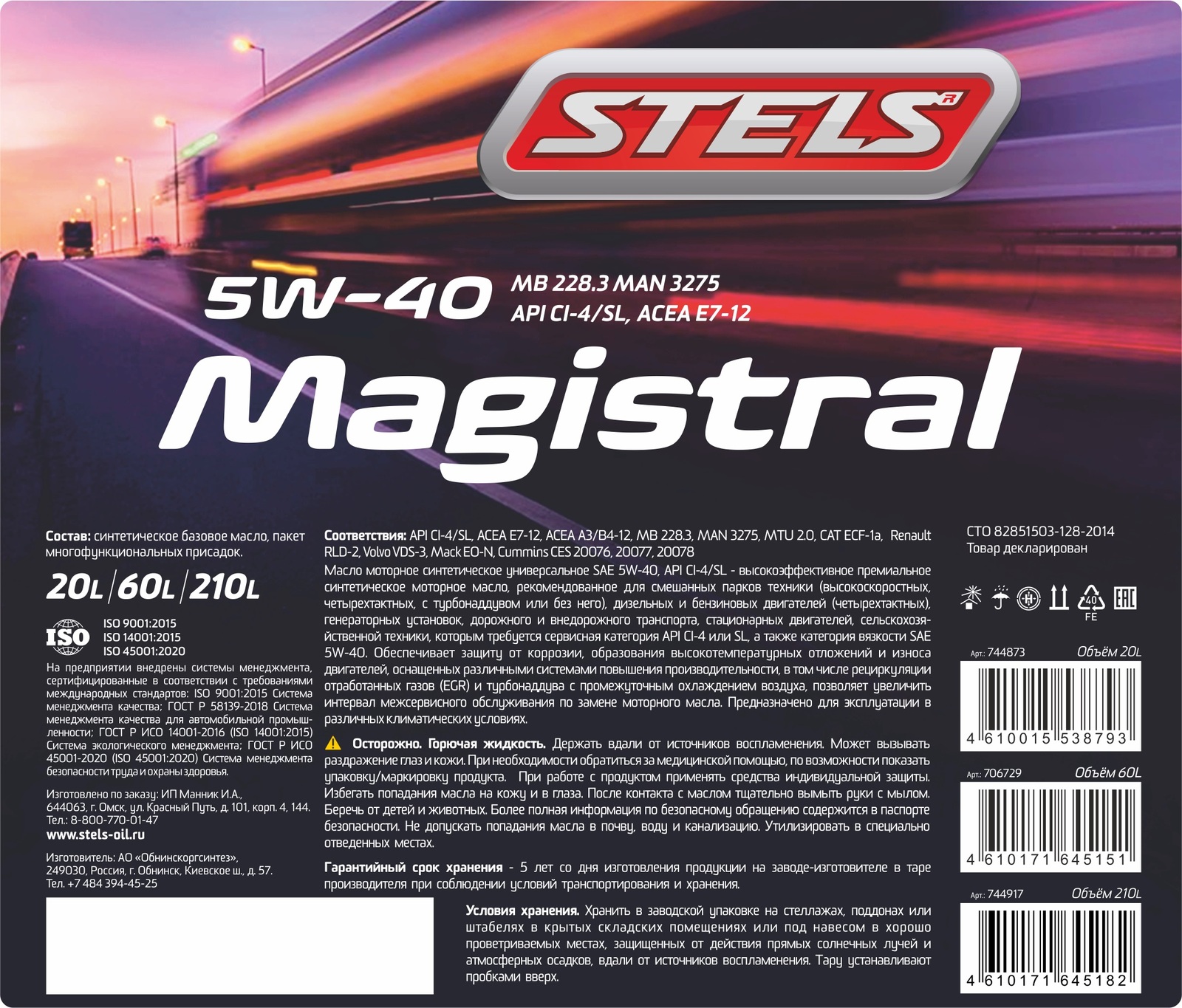 Масло моторное STELS Magistral 5W40 1л розлив из бочки